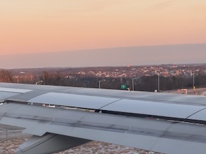 Dec. 27th, 2024 12:19 pmMonday we drove off to the Worcester airport about noon. It is up on top of a hill on the edge of Worcester and you can see all the way to Boston from there.