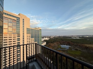 My wife issues very fond of a certain hotel in Orlando. It isn’t cheap, but we’re only there a few nights. I keep trying to get into the new tower by asking for a room with a balcony, but I keep getting the rooms in the old tower with a balcony big enough to have a party on. It was up on the 25th floor, so it is a nice view.