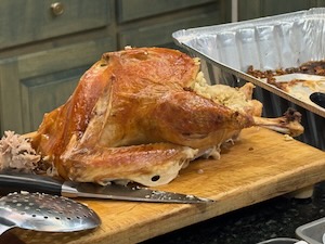Wednesday had a nicer start to it. We went back to Tom’s place and started cooking. It might have been the last box of Bell’s stuffing ever. Who knows.