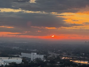 We took off about sunset and flew down the coast as it got darker. It was pretty dark when we landed at Orlando.