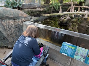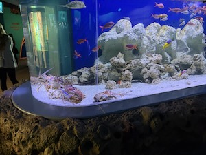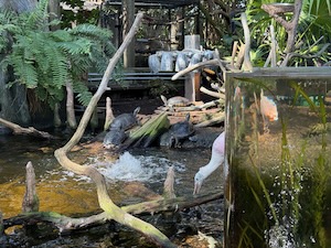 It’s an aquarium. Lots of fish. But, birds, turtles, alligators and other things too.