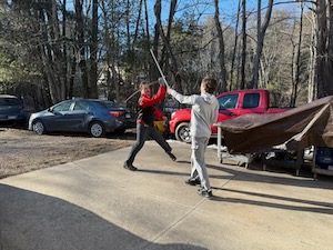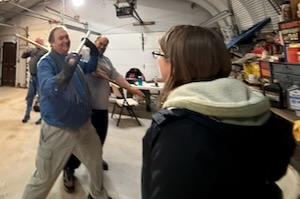 We started off with my teaching some additional folks how to do the dusack from Meyer’s 1570 book and dagger from Fiore’s 1400 or so book.
