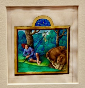 They had another special exhibit about manuscripts where the colorful bits had been cut out, mounted on their own and sold off individually. It says the Morgans didn’t like to buy them this way, but some were too good to pass up.