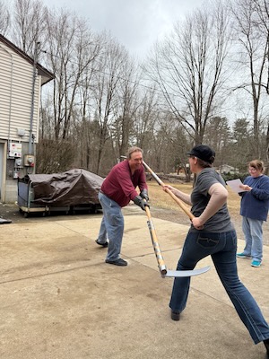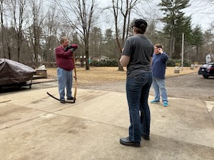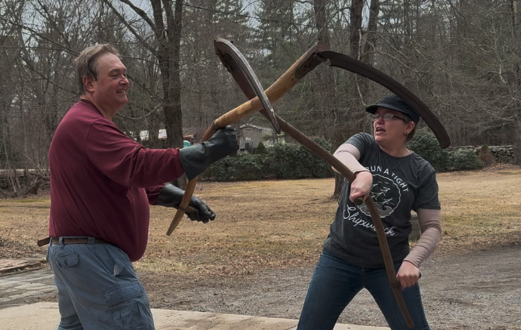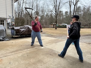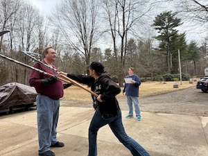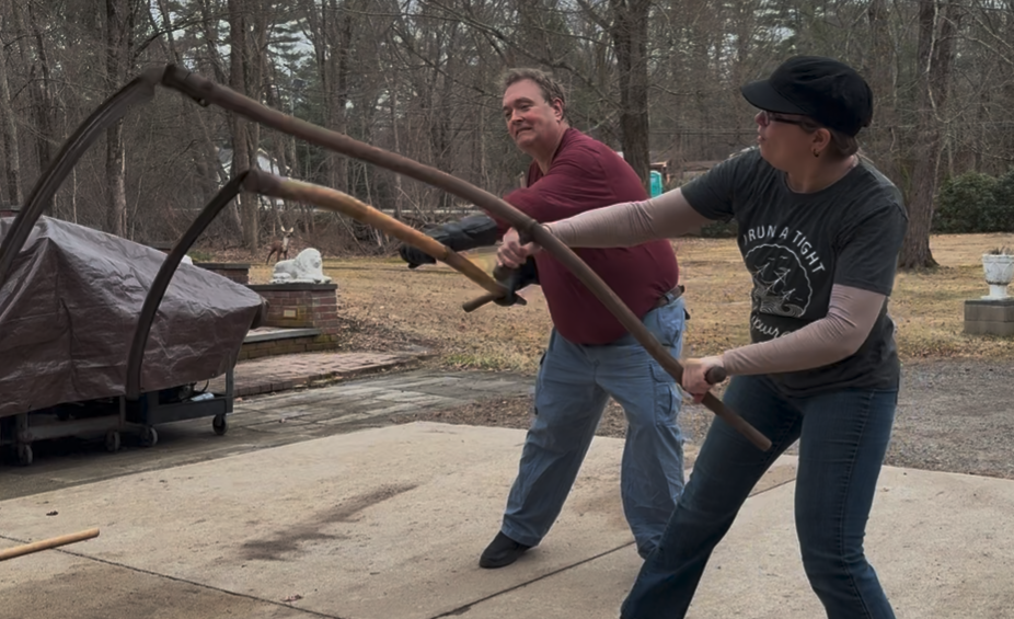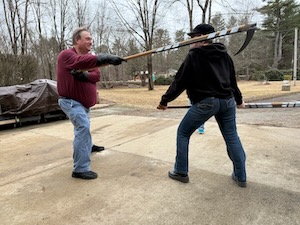 Once that was done, I changed into more modern clothes and we got one with this week’s development of Mair’s scythe instructions. Robin and I tired it while my read from the translation we have. Generally we try it with the plastic ones and then again with the metal once we think we’ve worked out the moves.