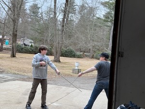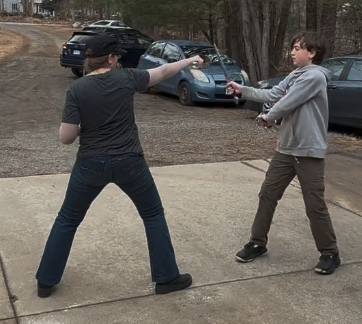 Afterwards my wife and Casey worked on their new fight. Not sure about fighting with a book and throwing it.