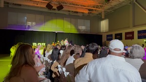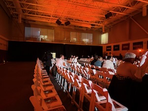 The photos of it didn’t come out well. The room was mostly dark with bright lights at the center. Lots of folks were moving around. My camera seemed obsessed with the hat the man in front of me was wearing and it is almost always in focus.