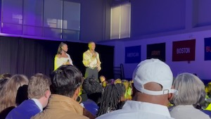 The congressman did stay to listed to everyone who wanted to say something. As noon passed the crowd did thin some. I think going to some of the protests that started about that time. But, I waited to hear them all too.