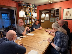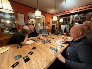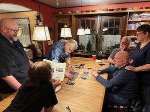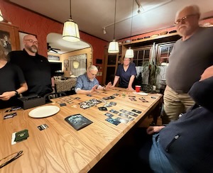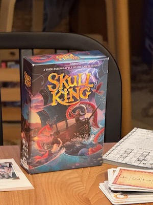 Friday was game night, and even with impending storms we cooked out. The rabbit was very impressed. Godzilla borrowed my reading glasses.