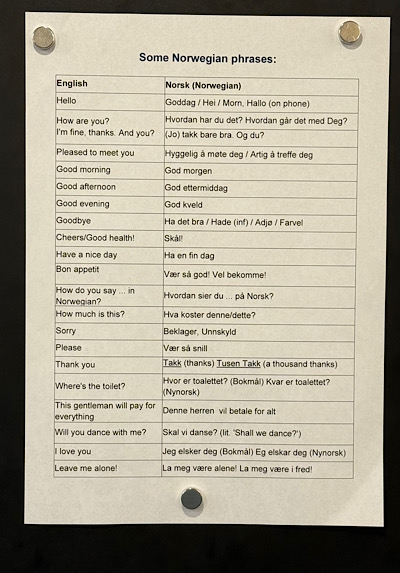 I wish I had seen this list before I went ashore in Norway. But, I’ll have it now if I ever go back.