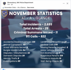 I started following my town’s police department on facebook. Their statistics are interesting…