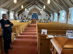 I walked around the church to the rectory where I saw a priest coming out of the living quarters and encouraged him to let my cousin’s husband in.