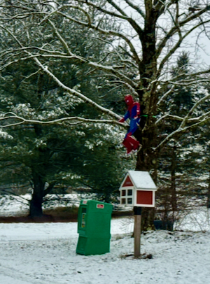 On the way home we passed the spiderman over the little free library and then we went for pizza.